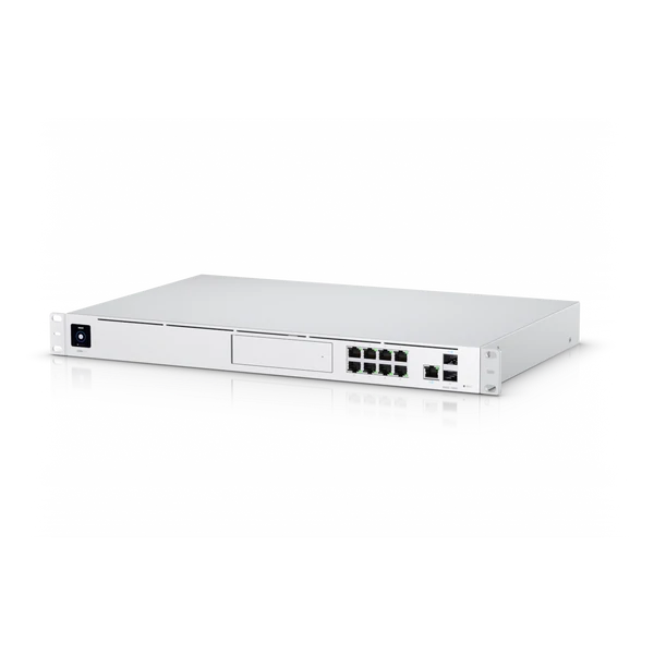 Der UDM Pro ist eine All-in-One-Netzwerkkonsole, die jede UniFi-OS-Anwendung wie Network und Protect ausführt. Es verfügt über ein integriertes Security Gateway, 10G SFP+ WAN-Unterstützung, einen 8-Port-Gigabit-Switch und einen Netzwerk-Videorekorder, der kompatible 3,5-Zoll-Festplattenlaufwerke (HDDs) unterstützt.
