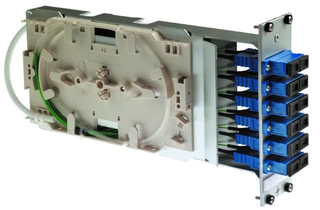 LWL 3HE/7TE Modul,m.Spleißhalt. Telekomm. 6xLCD-KUPPL,KER,12xPIGT9/125 OS2